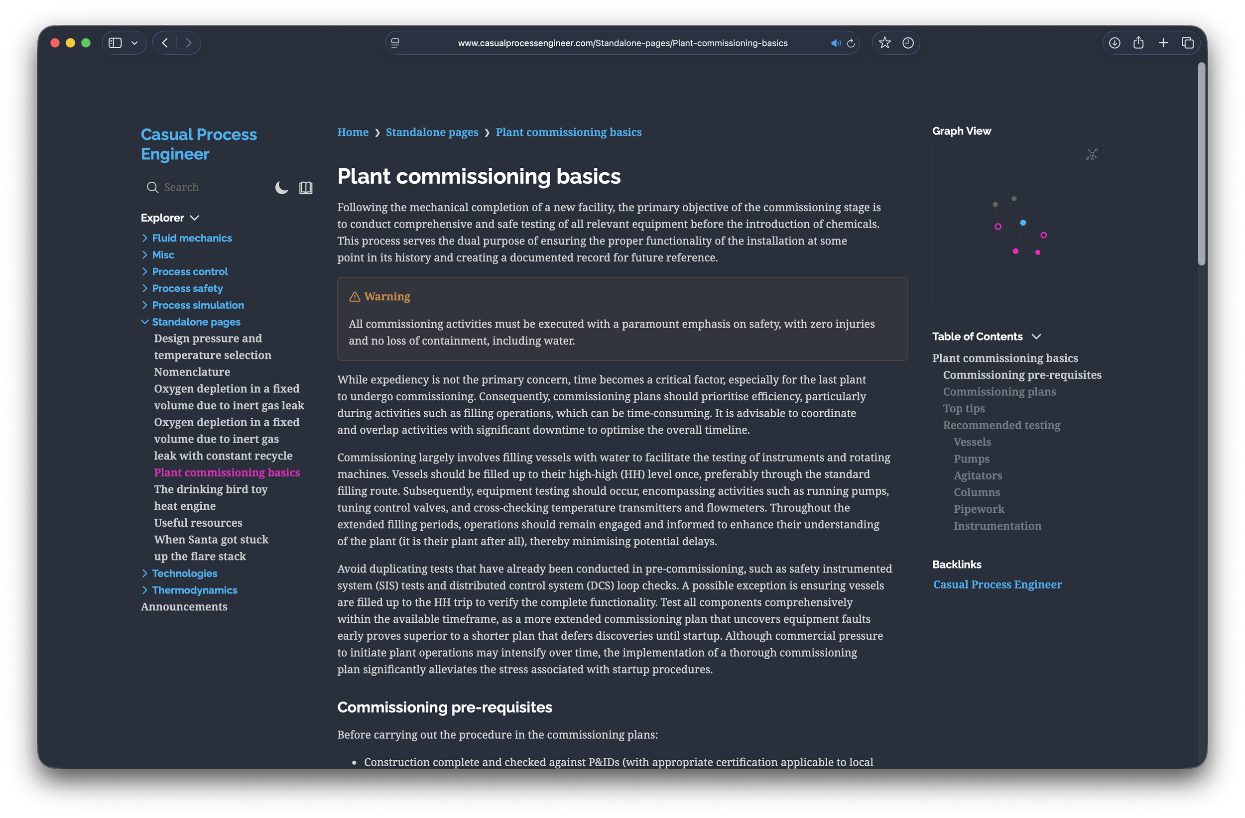 Casual Process Engineer is a site I started in 2023 as an experiment to bring together my technical notes. It’s an interlinked collection of useful insights and concise topic summaries for chemical and process engineers, drawn from my experience to date.