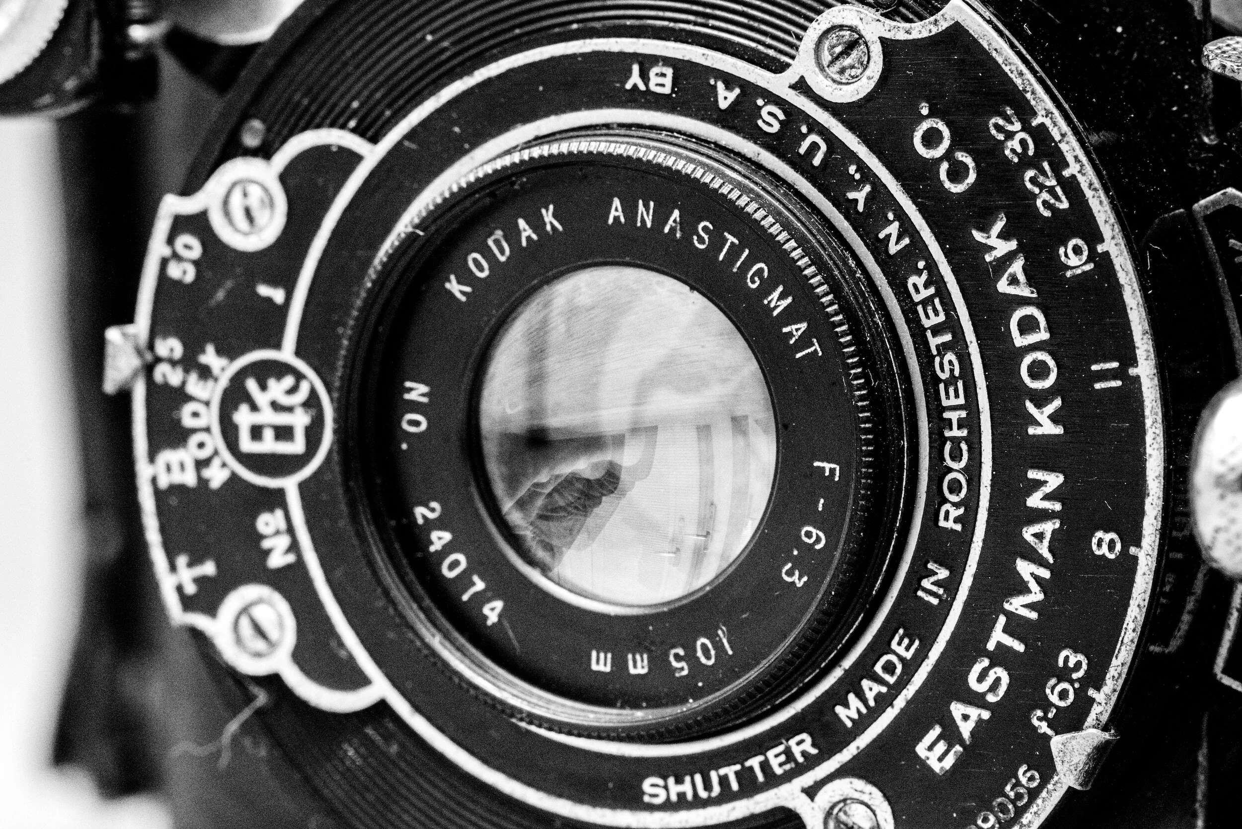 The exposure is controlled exactly like you would with a modern DSLR by changing the aperture, shutter-speed and film sensitivity (ISO). Using a modern Nikon DSLR has certainly made me take for granted the speed at which it operates. This Kodak can manage a blistering shutter speed of just 1/50 of a second at best! Whereas I wouldn't usually like to shoot below 1/125s when handheld really. There are four settings for shutter speed on this Kodak. The first two are 1/50s and 1/25s and perform as you might expect. The next is 'T' (for toggle?) that keeps the shutter open after the lever is pressed and shuts when pressed again. The final is 'B' (for bulb) which works much like 'T', except that the shutter only remains open whilst the shutter lever is being pressed down. Aperture ranges from f/6.3 - 32, and is all mechanical. Luckily, all this was in working order.